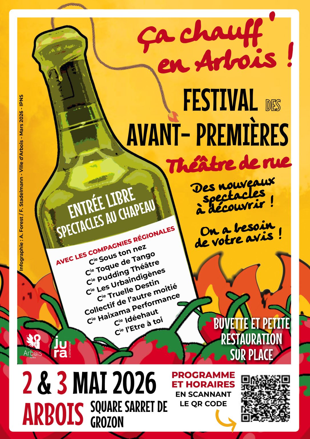 Soutenu par la Ville d’Arbois et le Département du Jura, spectacles au chapeau (prix libre).