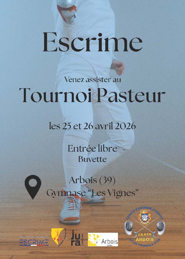 Le Cercle d’Escrime d’Arbois vous donne rendez-vous pour son traditionnel tournoi “Pasteur”, les 25 et 26 avril au gymnase des Vignes.